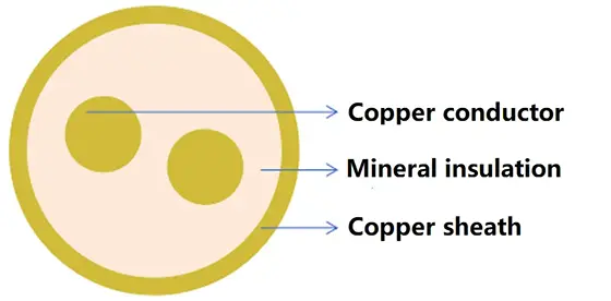 Mineralinės izoliacijos kabeliai sudaryti iš vario laidininko, magnio oksido miltelių mineralinės izoliacijos ir vario apvalkalo. Kai kabeliai naudojami gamyklose, kuriose varis yra korozinis, gali būti pridėtas išorinis polivinilchlorido (PVC) sluoksnis. Pastatuose ar požeminėse vietose, kur kabeliui svarbi estetika ar lengvas pasiekiamumas, galima pridėti nehalogeninį, mažai dūmų išskiriantį išorinį apvalkalą.