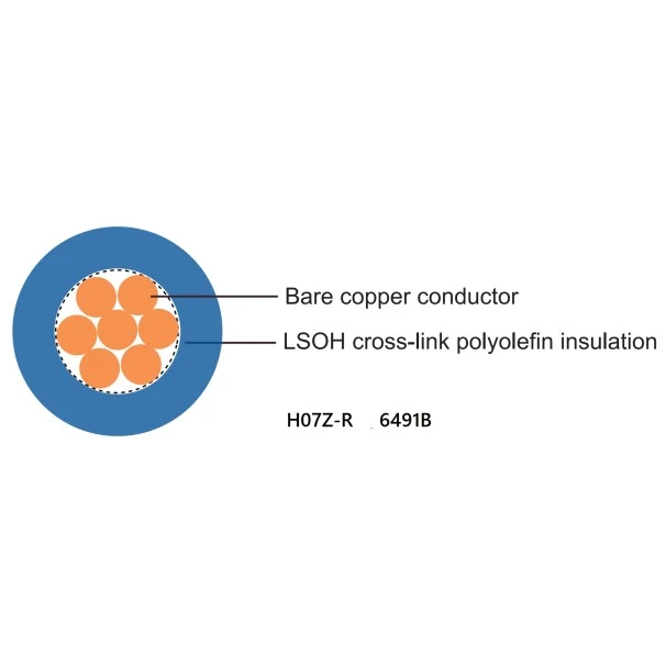 LSZH izoliuotas viengyslis kabelis, sudarytas iš T1R vario laidininko ir LSOH kryžminės poliolefino (taip pat vadinamos LSOH termoreaktyviosios) izoliacijos.